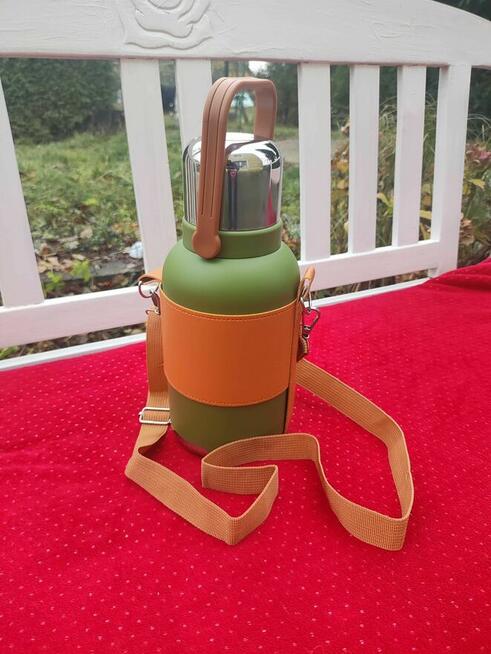 Nowoczesny termos ze stali nierdzewnej SUS304 o pojemności 1,5 l, wyposażony w kubek i pasek na ramię. Produkt w kolorach ...