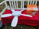 Nowa, biała lampa sufitowa z wentylatorowym silnikiem w kształcie śmigła. Lampa LED z regulacją natężenia światła, ...