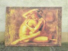 Duży obraz olejny przedstawiający nagą kobietę i mężczyznę w stylowej, ozdobnej ramie. Malownicze, ciepłe kolory i ...